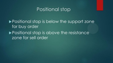 Positional stop Positional stop is below the support zone for buy order Positional stop is above the resistance zone for sell order