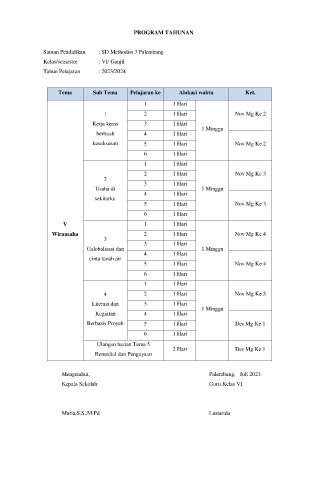 Tema Sub Tema Pelajaran ke Alokasi waktu Ket.