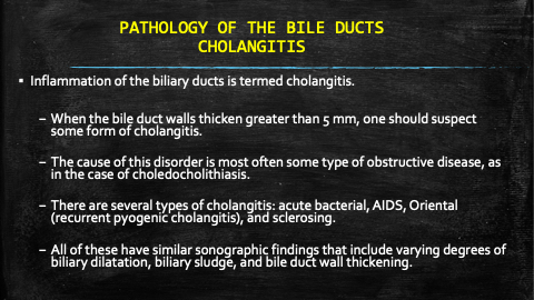 – There are several types of cholangitis: acute bacterial, AIDS, Oriental (recurrent pyogenic cholangitis), and sclerosing.