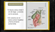 Sistema Biliar/DUCTOS Cístico • El ducto cístico mide 4 cm de largo y conecta con la vesícula. • DC conecta con el ducto común hepático y forma el ducto común biliar (CBD)