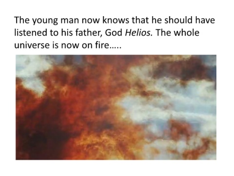 The young man now knows that he should have listened to his father, God Helios. The whole universe is now on fire…..