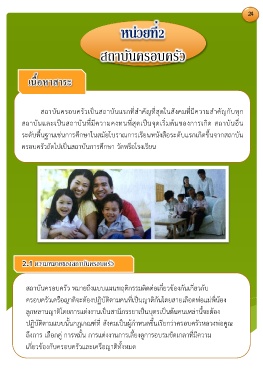 สถาบันครอบครัวเป็นสถาบันแรกที่ส าคัญที่สุดในสังคมที่มีความส าคัญกับทุก