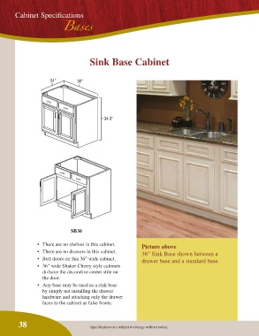 • There are no drawers in this cabinet. 36” Sink Base shown between a