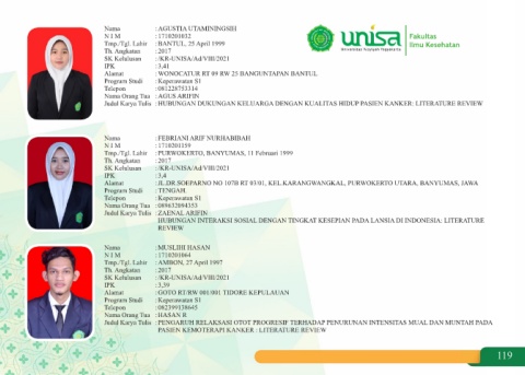 Judul Karya Tulis :HUBUNGAN DUKUNGAN KELUARGA DENGAN KUALITAS HIDUP PASIEN KANKER: LITERATURE REVIEW