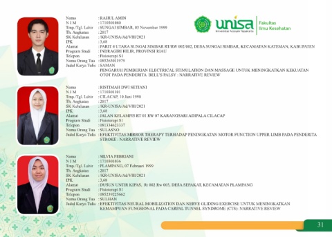 Judul Karya Tulis :EFEKTIVITAS MIRROR THERAPY TERHADAP PENINGKATAN MOTOR FUNCTION UPPER LIMB PADA PENDERITA