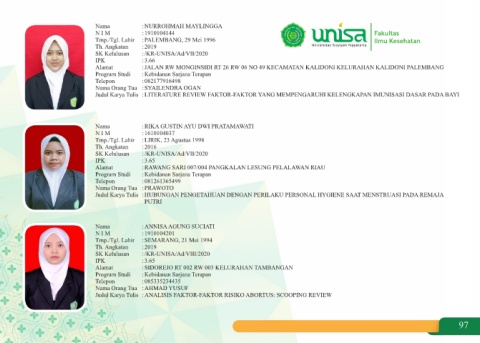 Tmp./Tgl. Lahir :PALEMBANG, 29 Mei 1996 Ilmu Kesehatan