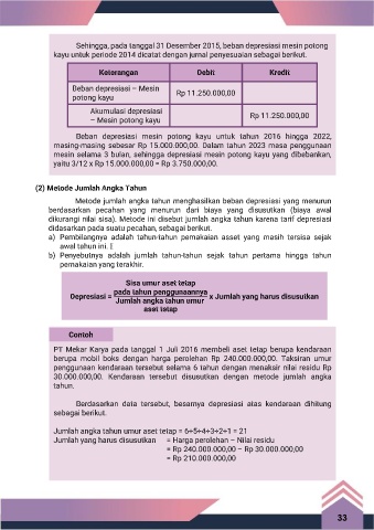 Sehingga, pada tanggal 31 Desember 2015, beban depresiasi mesin potong