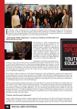 sentations to Italian and international students about Indonesia and Public Diplomacy of Indonesia.
