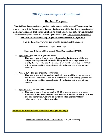 environment; while also incorporating the skill of golf. The Golflete Program is