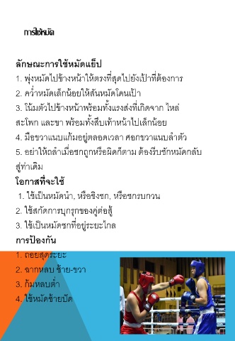 1. ใช้เป็นหมัดนํา, หรือชิงชก, หรือชกรบกวน