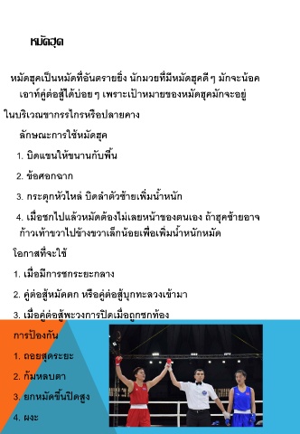 เอาท์คู่ต่อสู้ได้บ่อยๆ เพราะเป้ าหมายของหมัดฮุคมักจะอยู่