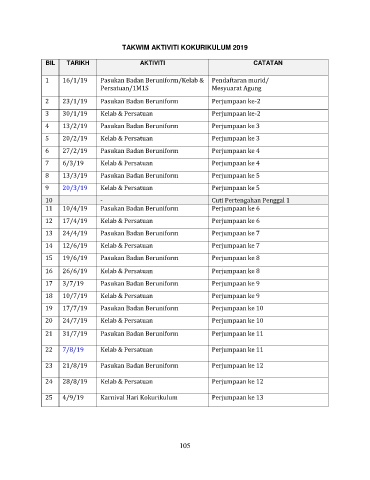 TAKWIM AKTIVITI KOKURIKULUM 2019