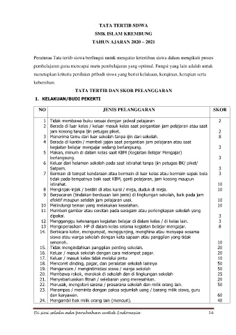 TATA TERTIB DAN SKOR PELANGGARAN