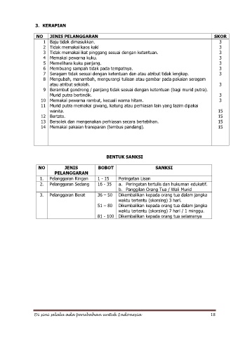 7 Seragam tidak sesuai dengan ketentuan dan atau atribut tidak lengkap. 3