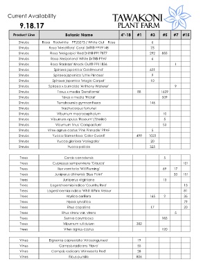 Product Line Botanic Name 4"-18 #1 #3 #5 #7 #15
