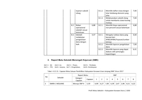 Tabel. 4.12.13. Capaian Mutu Satuan Pendidikan Kabupaten Konawe Utara Jenjang SMK Tahun 2017