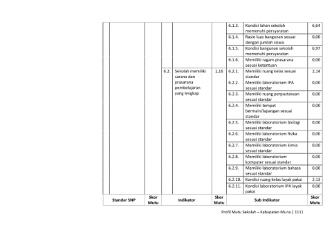 6.2. Sekolah memiliki 1,16 6.2.1. Memiliki ruang kelas sesuai 2,14