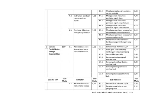 5 Standar 2,59 5.1. Ketersediaan dan 3,21 5.1.1. Berkualifikasi minimal S1/D4 2,89