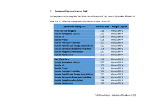 Tabel 4.14.8. Capaian SNP Jenjang SMA Kabupaten Muna Barat Tahun 2017