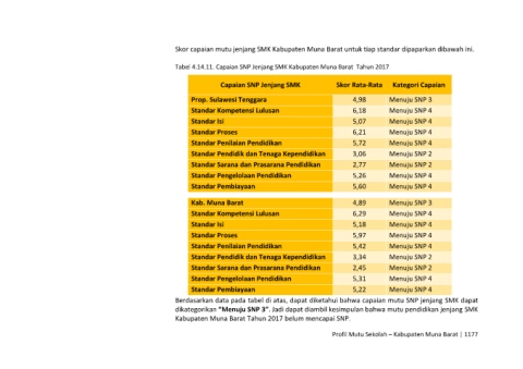 Tabel 4.14.11. Capaian SNP Jenjang SMK Kabupaten Muna Barat Tahun 2017