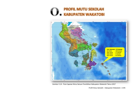 Kab. Wakatobi : 173 Sekolah SD ★★★ : 108 Sekolah SMA ★★★ : 17 Sekolah SMK ★★★ : 5 Sekolah SMP ★★★ : 43 Sekolah Gambar 4.14. Peta Capaian Mutu Satuan Pendidikan Kabupaten Wakatobi Tahun 2017 Profil Mutu Sekolah – Kabupaten Wakatobi | 1195