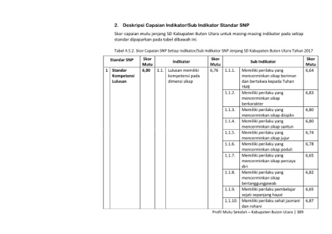 Tabel 4.5.2. Skor Capaian SNP Setiap Indikator/Sub Indikator SNP Jenjang SD Kabupaten Buton Utara Tahun 2017