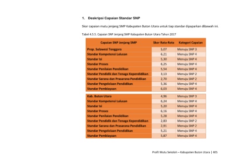 Tabel 4.5.5. Capaian SNP Jenjang SMP Kabupaten Buton Utara Tahun 2017