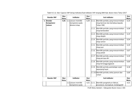 Tabel 4.5.12. Skor Capaian SNP Setiap Indikator/Sub Indikator SNP Jenjang SMK Kab. Buton Utara Tahun 2017