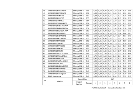 71 SD NEGERI 4 KOLAKAASI Menuju SNP 4 5,44 7,00 5,34 6,70 5,93 3,01 3,07 5,89 6,56