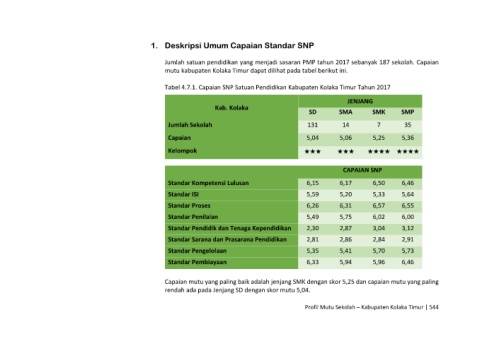 Tabel 4.7.1. Capaian SNP Satuan Pendidikan Kabupaten Kolaka Timur Tahun 2017