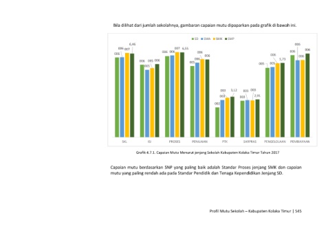 Grafik 4.7.1. Capaian Mutu Menurut jenjang Sekolah Kabupaten Kolaka Timur Tahun 2017