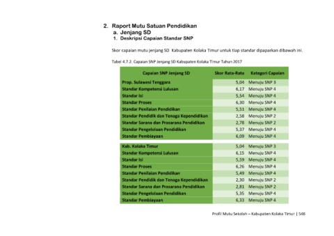 Tabel 4.7.2. Capaian SNP Jenjang SD Kabupaten Kolaka Timur Tahun 2017