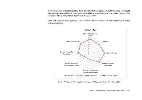 Berdasarkan data pada tabel di atas, dapat diketahui bahwa capaian mutu SNP jenjang SMP dapat