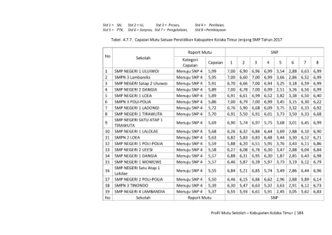 Tabel. 4.7.7. Capaian Mutu Satuan Pendidikan Kabupaten Kolaka Timur Jenjang SMP Tahun 2017