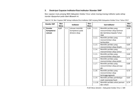Tabel 4.7.8. Skor Capaian SNP Setiap Indikator/Sub Indikator SNP Jenjang SMA Kabupaten Kolaka Timur Tahun 2017