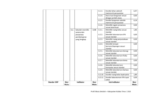 6.2. Sekolah memiliki 0,98 6.2.1. Memiliki ruang kelas sesuai 1,86