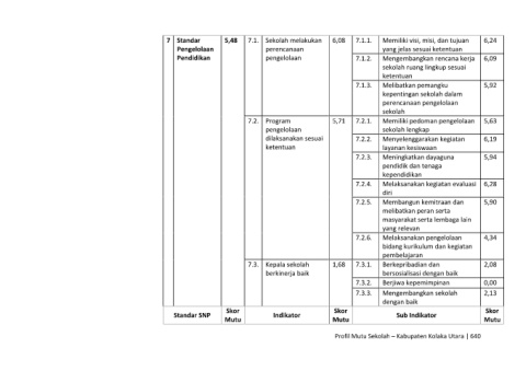 7 Standar 5,48 7.1. Sekolah melakukan 6,08 7.1.1. Memiliki visi, misi, dan tujuan 6,24