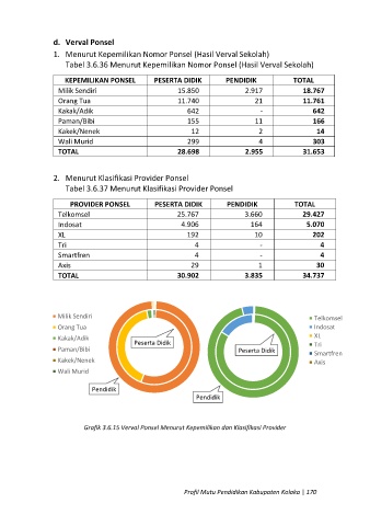 Tabel 3.6.36 Menurut Kepemilikan Nomor Ponsel (Hasil Verval Sekolah)