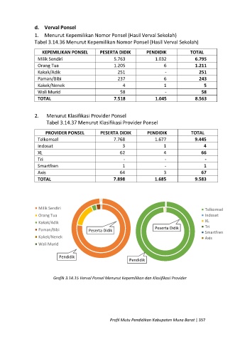 Grafik 3.14.15 Verval Ponsel Menurut Kepemilikan dan Klasifikasi Provider