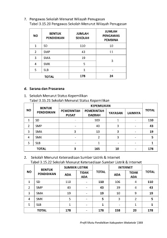 Tabel 3.15.21 Sekolah Menurut Status Kepemilikan