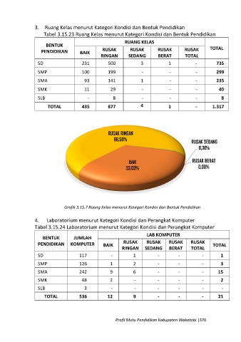 Tabel 3.15.23 Ruang Kelas menurut Kategori Kondisi dan Bentuk Pendidikan