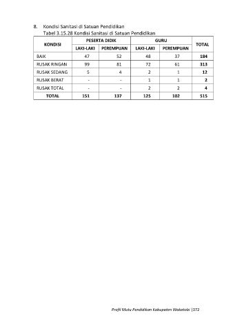 Tabel 3.15.28 Kondisi Sanitasi di Satuan Pendidikan
