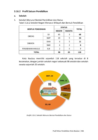 Grafik 3.16.1 Sekolah Menurut Bentuk Pendidikan dan Status