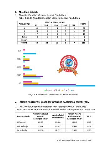 Tabel 3.16.33 Akreditasi Sekolah Menurut Bentuk Pendidikan
