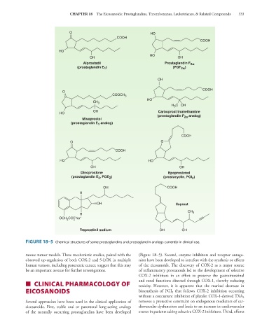 FIGURE 18–5 Chemical structures of some prostaglandins and prostaglandin analogs currently in clinical use.