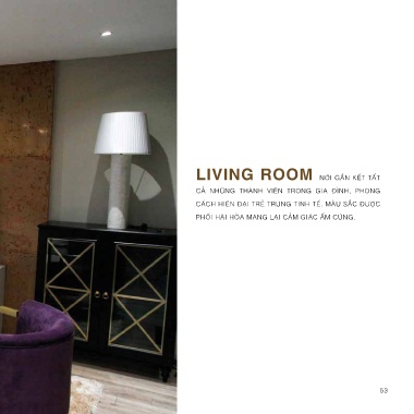 LIvIng ROOM Nơi gắN kếT TấT cả NHữNg THàNH ViêN TroNg giA đìNH, pHoNg cácH HiệN đại TrẺ TruNg TiNH Tế. màu Sắc được pHối Hài HòA mANg lại cảm giác ấm cÚNg. 53