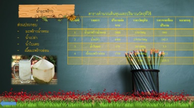 -     มะพร้าวน ้าหอม                      1       น ้ามะพร้าวน ้าหอม    2800           150/500g             840