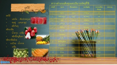 ผลไม้ ล ำดับที่ รำยกำร ปริมำณต่อจำน รำคำวัตถุดิบ รำคำขำยเทียบ หมำยเหตุ