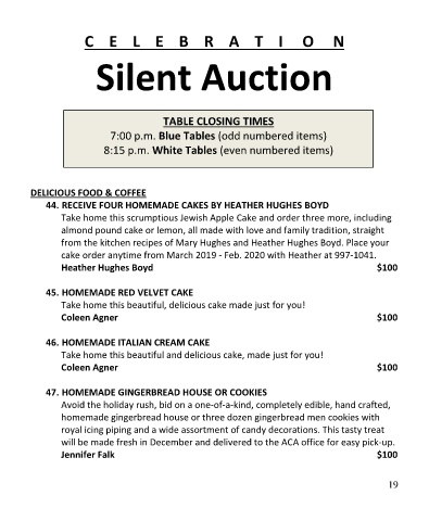 will be made fresh in December and delivered to the ACA office for easy pick-up.