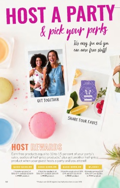 Earn free products equal to 10 to 15 percent of your party’s PARTY WITH